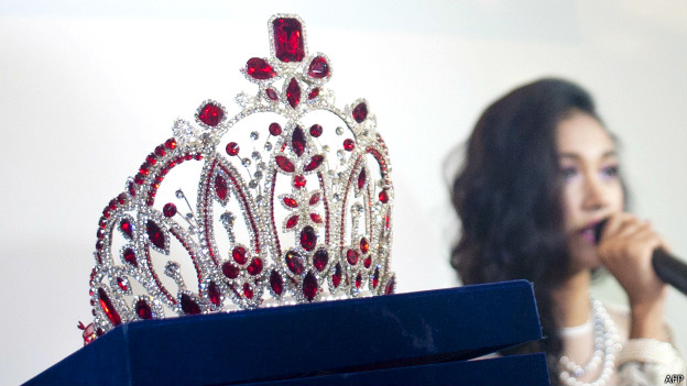 Cô May là người Myanmar đầu tiên chiến thắng trong cuộc thi sắc đẹp quốc tế, phóng viên Jonah Fisher của BBC từ Yangon nói.
