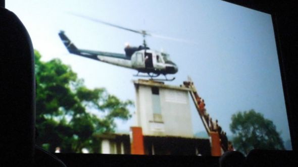 Những đoạn phim ghi lại hình ảnh Miki Nguyễn, lúc đó mới 6 tuổi, và gia đình đã phải nhảy ra từ cửa sổ chiếc Chinook lơ lửng trên không, không thể đáp vì có thể làm chìm chiến hạm. Một em bé cuốn trong khăn vải được thả xuống cho thủy thủ đoàn chụp bắt. Sau đó phi công rà rà trực thăng sát mặt biển, nhảy ra khỏi cửa sổ, trước khi máy bay nổ tung trên nước.