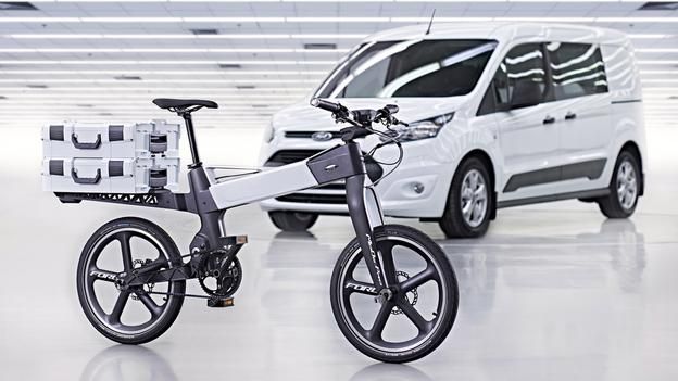 Chi tiết: Để tối ưu hóa để di chuyển trong trung tâm thành phố bi tắc nghẽn, ta đỗ xe ô tô khi không cần đến nó, và tiếp tục đi bằng xe đạp, đó là cách sáng tạo và hay để tránh ách tắc. Với ý đó, hãng Ford đã thiết kế xe đạp gấp E MoDe:Pro dùng cho “những người đưa công văn, thợ điện, đưa hàng và làm dịch vụ”, sau khi đã đỗ xe van 7 chỗ (xem ảnh). Hướng đi tới điểm đến không phải được truyền qua điện thoại di động mà qua xúc giác của thông tin phản hồi vào tay cầm của xe, nó sẽ rung về phía cần rẽ.