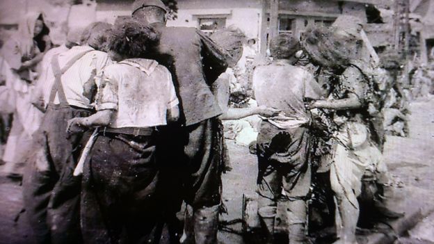 Điều làm bà Kouchi bị ám ảnh và muốn nói tới ngày hôm nay là tiếng than khóc của người chị gái bế đứa em còn nhỏ của mình. (xem hình trên)