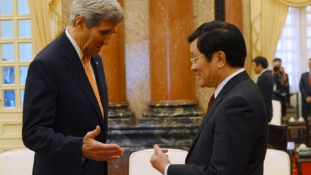 Sáng ngày 7/8/2015, Ngoại trưởng Hoa Kỳ, John Kerry đã có buổi tiếp kiến với Chủ tịch nước Trương Tấn Sang tại Phủ Chủ tịch.