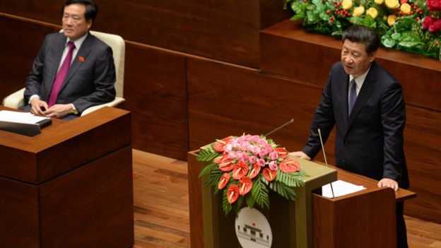 “Đã là láng giềng thì khó tránh xảy ra va chạm nhưng hai bên cần kiên trì giải quyết, vì khi đã được đại sự thì không khó để giải quyết tiểu sự,” ông Tập nói trong bài phát biểu hơn 20 phút được dịch trực tiếp ra tiếng Việt cho 500 dân biểu Việt Nam tại phòng Diên Hồng trong tòa nhà Quốc hội, theo báo Tuổi Trẻ.