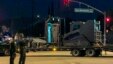 Nhân viên thực thi pháp luật với các loại xe bọc thép tìm kiếm tại một khu vực gần nơi cảnh sát chặn lại một chiếc SUV.