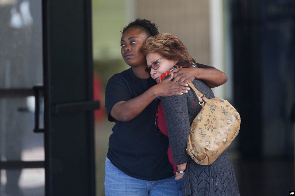 Hai phụ nữ ôm nhau tại trung tâm dịch vụ xã hội ở San Bernardino sau vụ nổ súng giết chết 14 người, ngày 2/12/2015.
