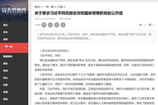Lá thư, đăng từ ngày 4/3 trên các mạng tiếng Trung, nói ông Tập đã "vứt bỏ truyền thống của Đảng Cộng sản" là vì dân.