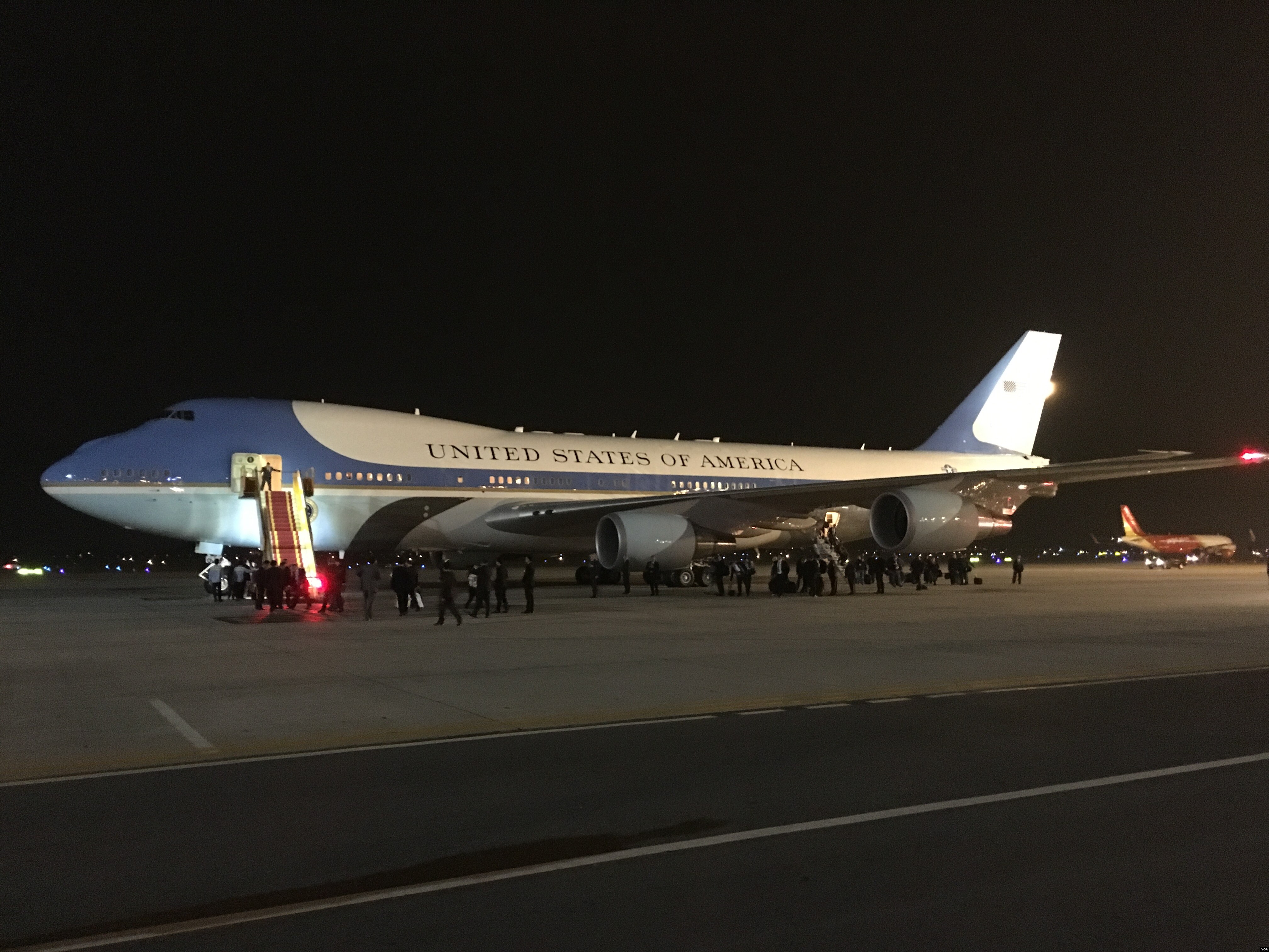 Chuyên cơ Air Force One chở Tổng thống Mỹ Barack Obama đã hạ cánh tại Hà Nội đúng 9 giờ 30 tối 22/5. Tại phi trường quốc tế Nội Bài, ông Đào Việt Trung, Chủ nhiệm Văn phòng Chủ tịch nước Việt Nam, và ông Hà Kim Ngọc, Thứ trưởng Ngoại giao Việt Nam, đã chào mừng ông Obama đến Việt Nam, bắt đầu chuyến thăm sẽ kéo dài đến ngày 25/5. Sau đây là bài tường trình từ Hà Nội của An Tôn.