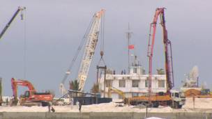 Bây giờ Trung Quốc đang xây dựng các đảo mới trọng yếu trên năm đá ngầm khác nhau.