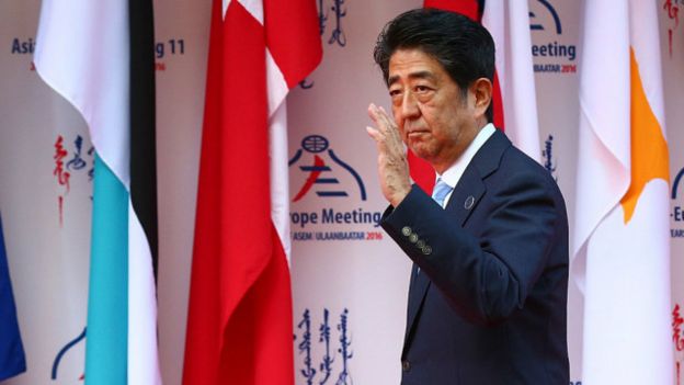 Trong bài diễn văn tại Asem trước cuộc gặp với Thủ tướng Trung Quốc, Thủ tướng Abe phát biểu rằng "nên nhất quán với nguyên tắc rằng không thể cho phép thay đổi nguyên trạng bằng vũ lực".