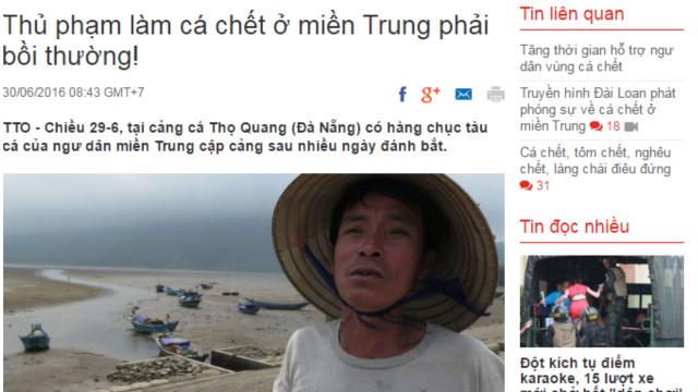Trong sáng 30/6, tờ Tuổi Trẻ chạy ba bài với tựa "Chiều nay công bố thủ phạm làm cá chết ở miền Trung", "Thủ phạm làm cá chết ở miền Trung phải bồi thường!" và bài "Trừng phạt nghiêm khắc".