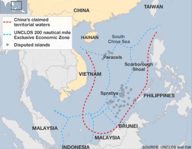 Trung Quốc tăng cường mở rộng khu vực tuyên bố chủ quyền bằng cách cải tạo đảo và hoạt động tuần tra trên biển, trong khi Hoa Kỳ nói họ phản đối việc ngăn cản tự do hàng hải và tuyên bố chủ quyền bất hợp pháp bởi tất cả các bên.