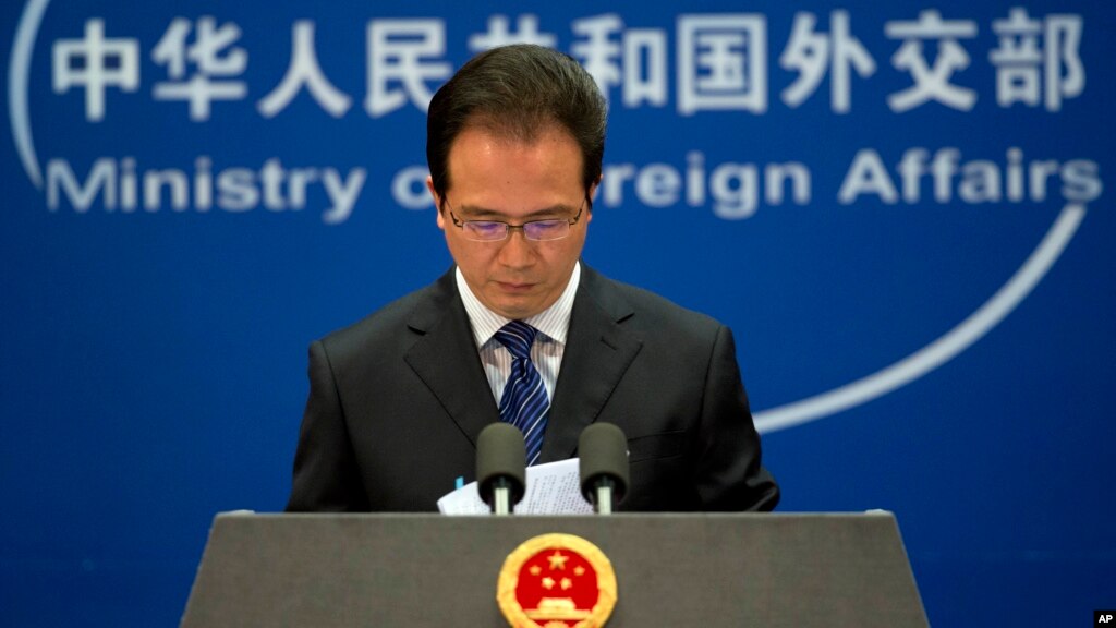 Phát ngôn nhân Bộ Ngoại giao Trung Quốc, Hồng Lỗi trong một cuộc họp báo ở Bắc Kinh.
