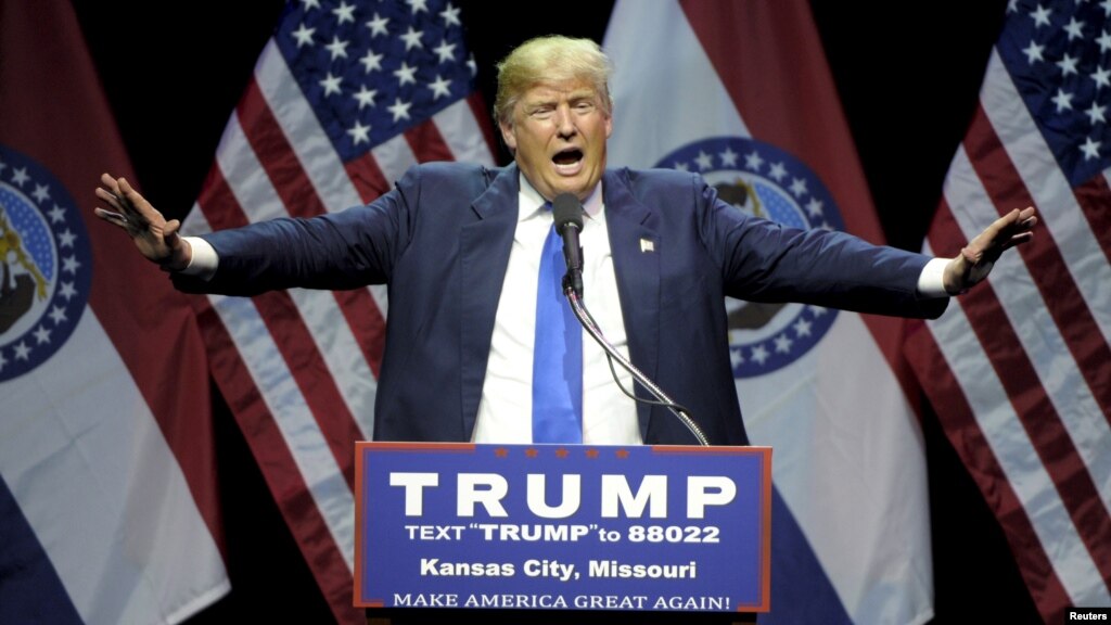 Ứng cử viên tổng thống của đảng Cộng hòa Donald Trump phát biểu trong cuộc vận động tranh cử tại thành phố Kansas, Missouri, ngày 12/3/2016.
